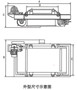 | 型號(hào) 參數(shù) 項(xiàng)目 | 適應(yīng)帶寬 mm | 額定吊高 mm | 磁場(chǎng)強(qiáng)度 ≥mT | 物料厚度 ≤mm | 勵(lì)磁功率 ≤Kw | 驅(qū)動(dòng)功率 ≤Kw | 適應(yīng)帶速 ≤m/s | 重量 Kg | 外型尺寸mm | ||||